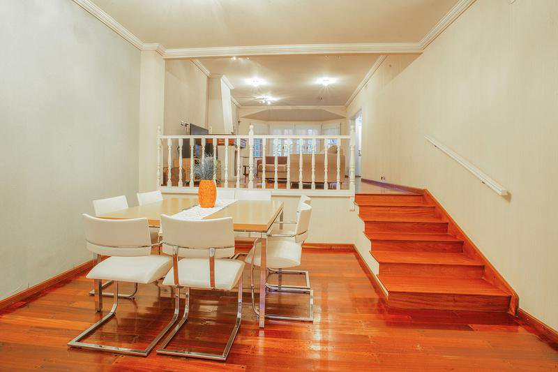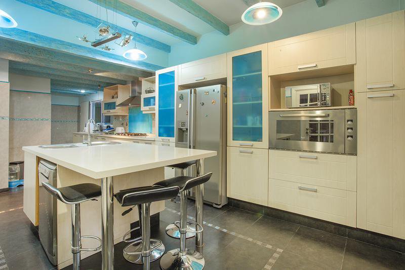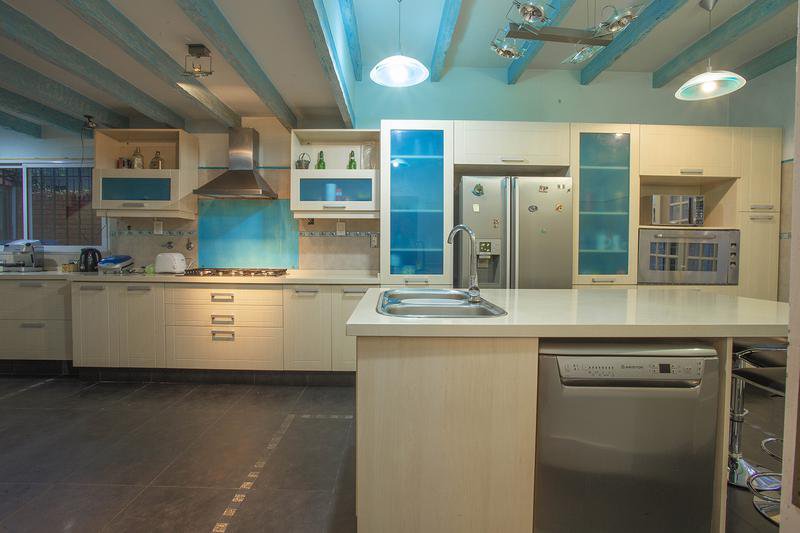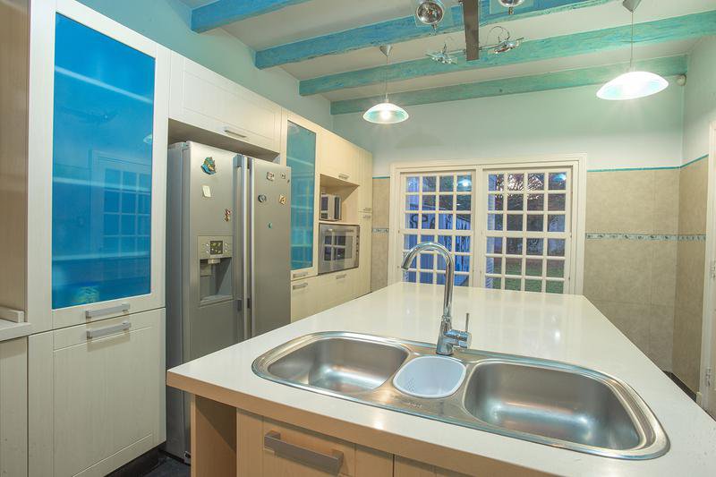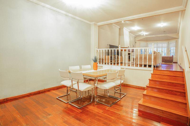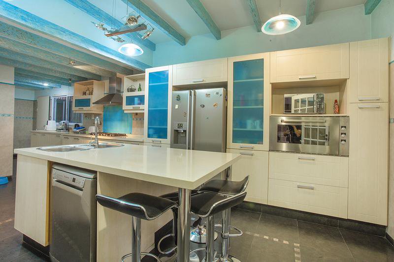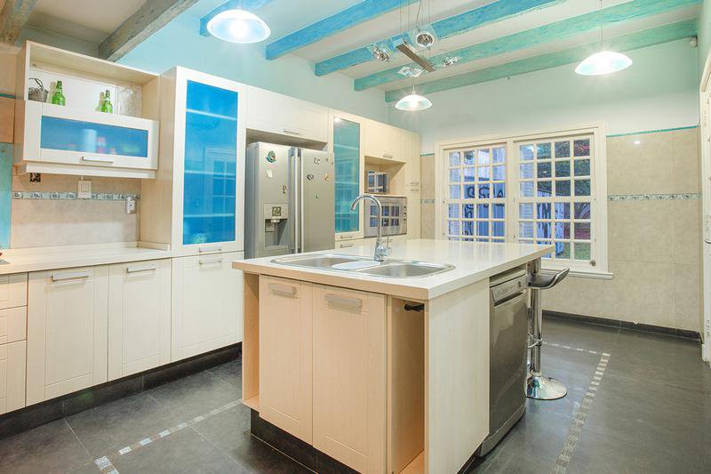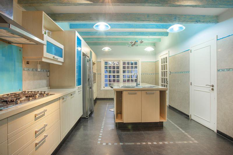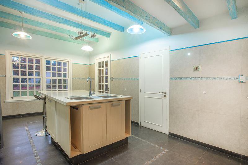 Bajo medio nivel : Comedor Estar Diario p/tarugado c/puerta ventana al parque.- Cocina equipada c/m/b/s mesada, Horno/ Anaffe y Campana - Isla c/pileta de lavar, conexion p/lavavvajilla y Mesa Barra diaria (mesada de cocina en Silestone), techo con vigas vista -