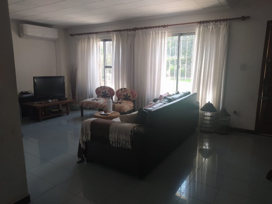 Consta de living con ventanales al parque, comedor, cocina con despensa, 3 dormitorios, dos de ellos con placards empotrados, 1 baño completo, mas 1 toilette, 2 cocheras semicubiertas y quincho cubierto mas baño completo y parrilla.