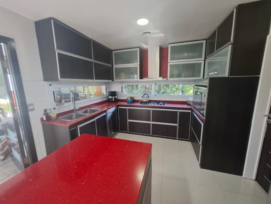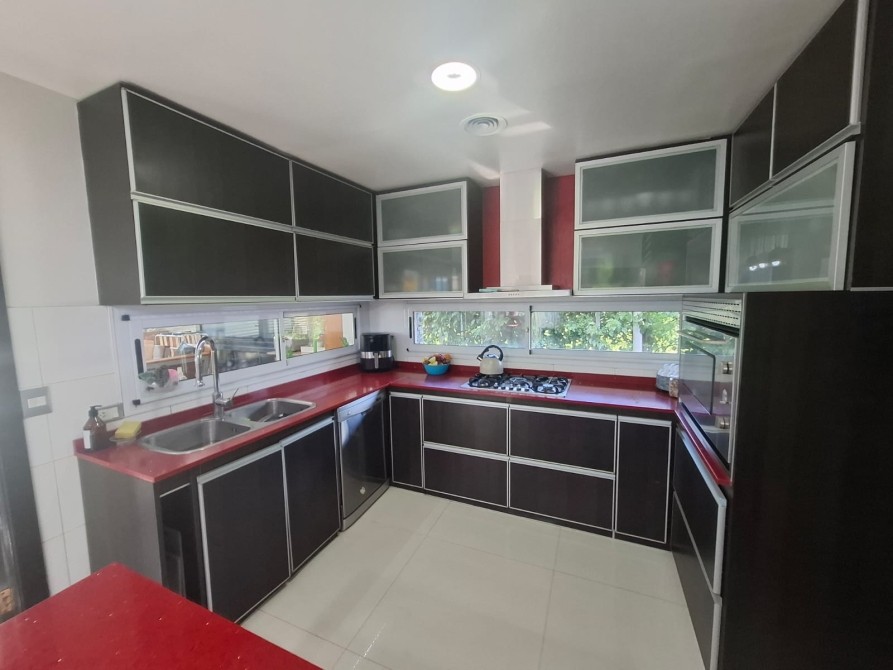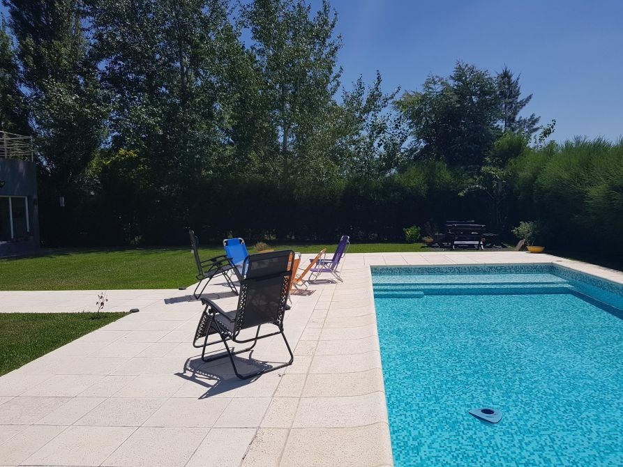 Quincho cerrado incorporado a la casa con amplia parrilla, pileta climatizada.