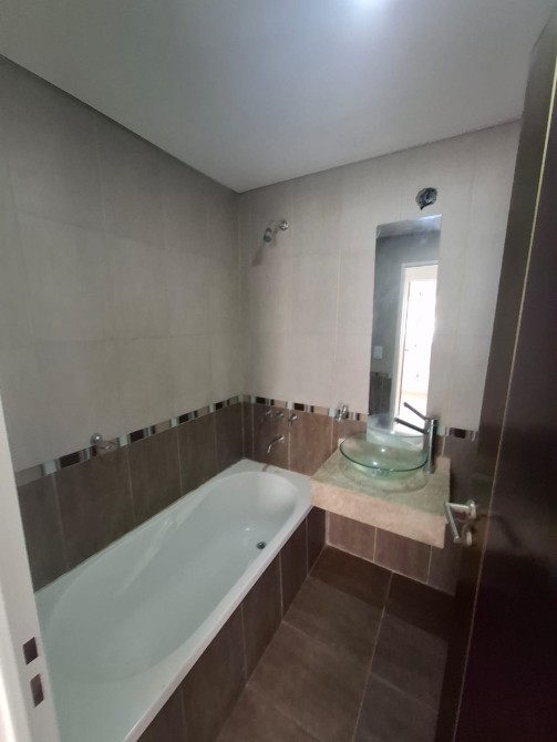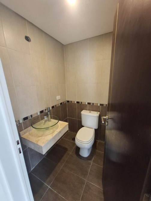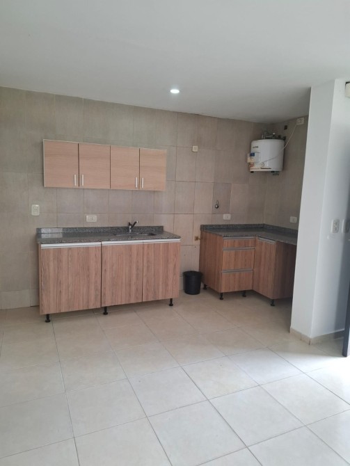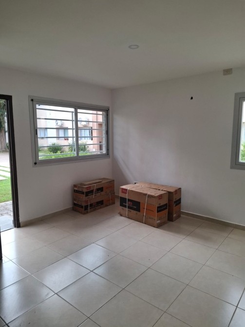 Cocina completa con mesadas, muebles bajo mesada y alacenas. Se entrega con cocina a gas a estrenar (actualmente mediante garrafa, a la espera de la aprobación final de Metrogas en el complejo). Toilette de recepción. Dos dormitorios, el principal con un cómodo vestidor. Baño principal con bañera.
