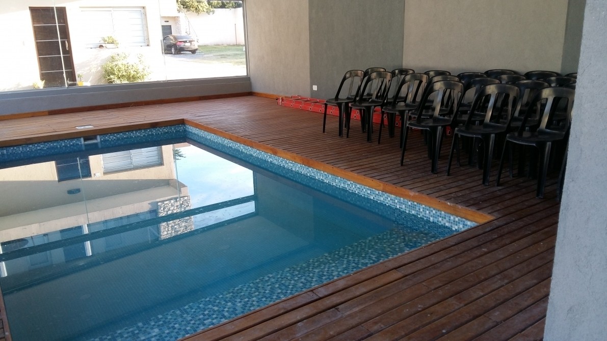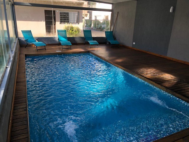 Sector Indoor: Espacio vidriado con piscina climatizada cubierta.