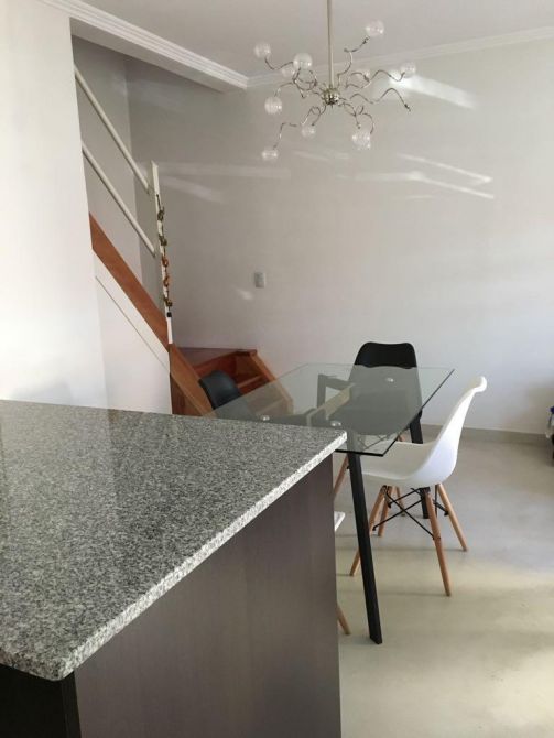 Planta baja, baulera. Toilet completo con inodoro y lavabo, cocina comedor integrado todo amoblado, con desayunador.