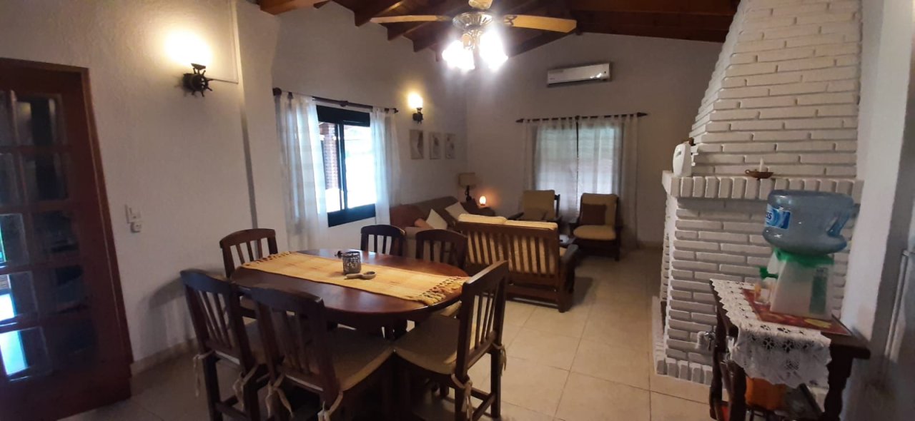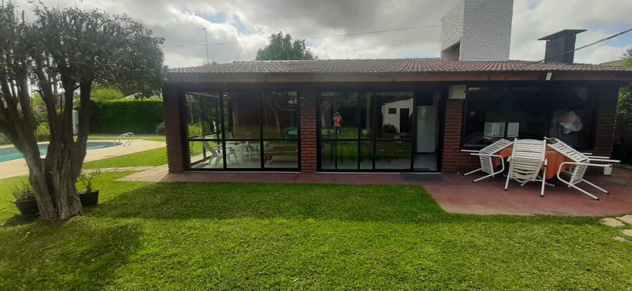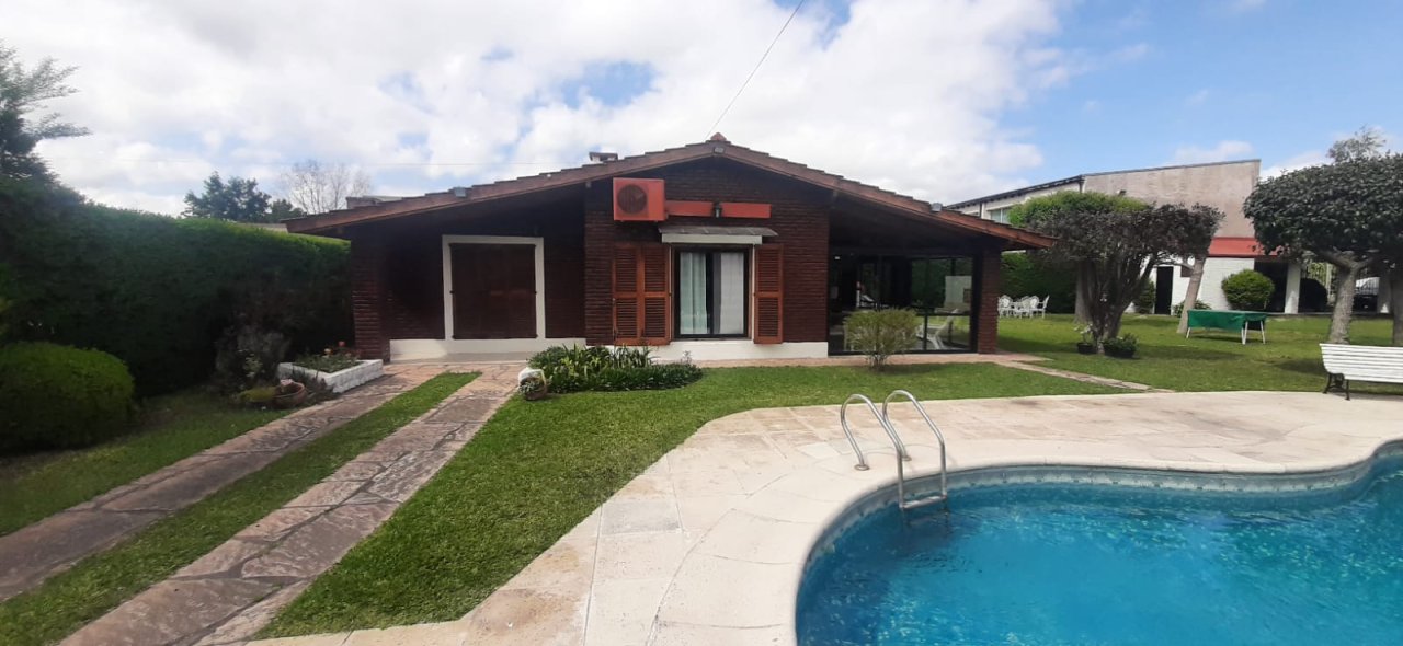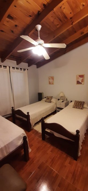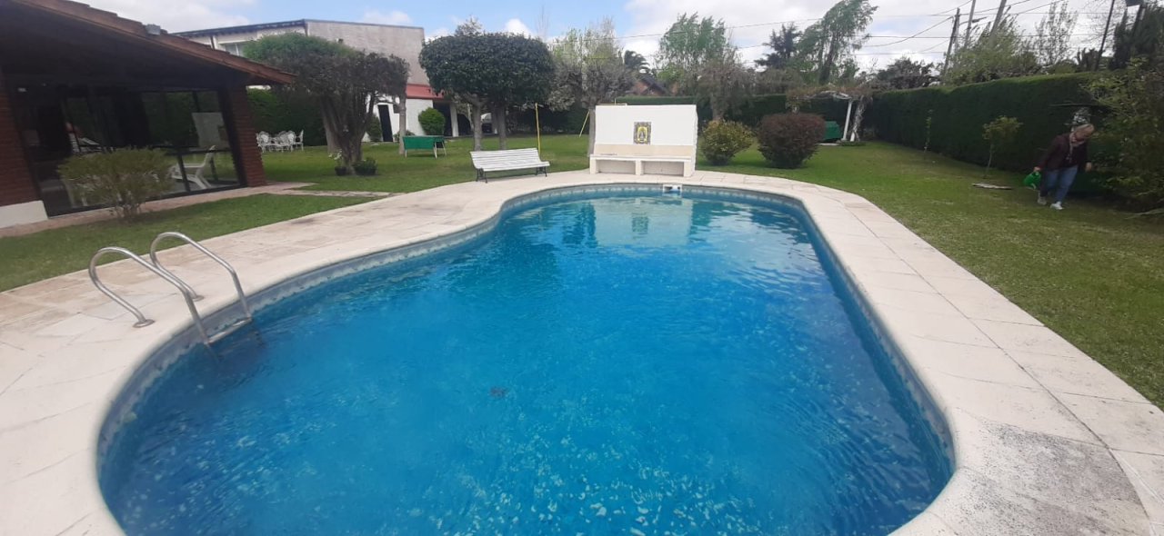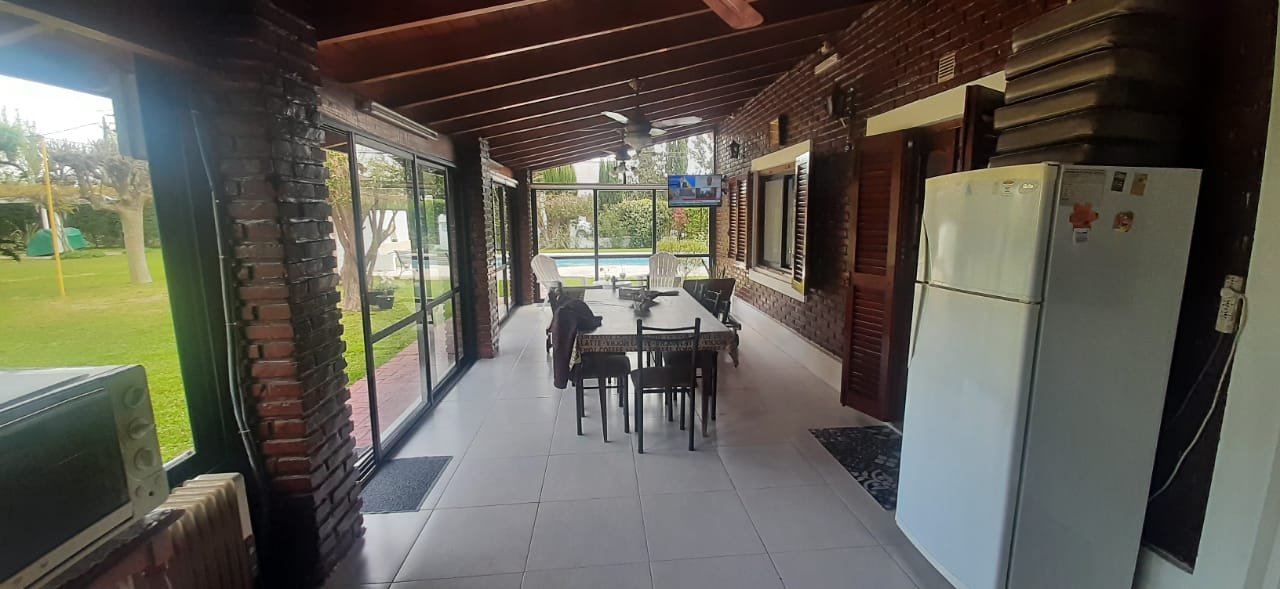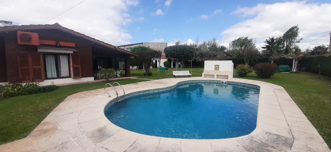 3 dormitorios ( 1 con cama matrimonial - otro con 3 camas individuales y otro con cama cucheta, 2 baños completos, pileta de natacion, gran parque, quincho con lavadero, amplia parrilla en el quincho, mas parrilla exterior y horno de barro. Grupo electrogeno.