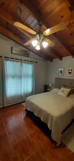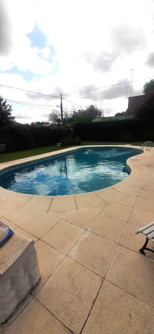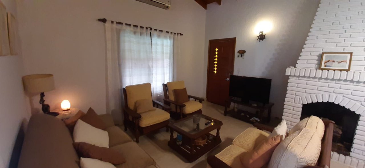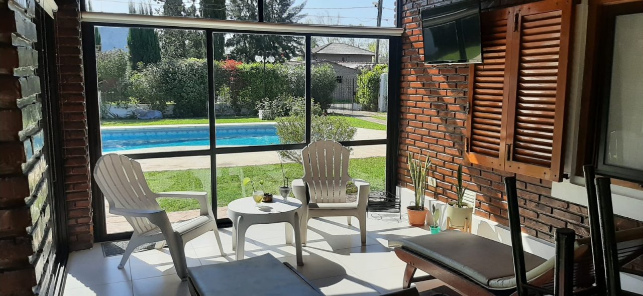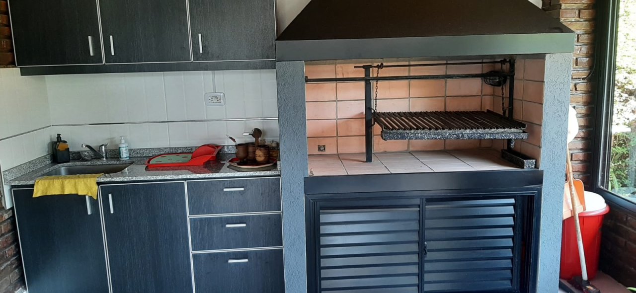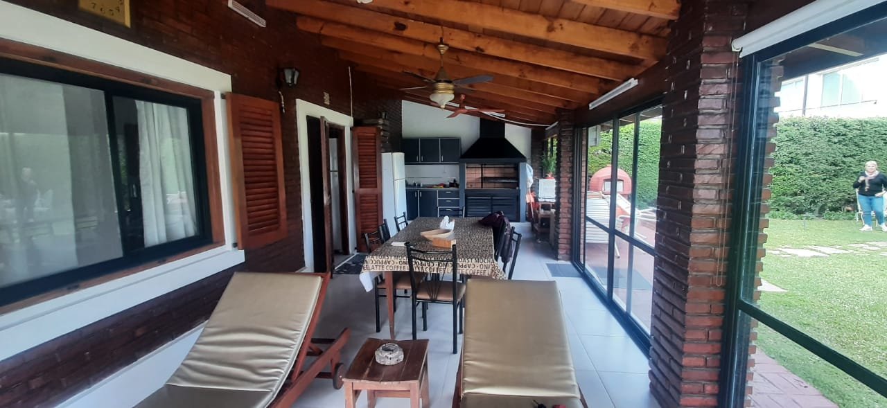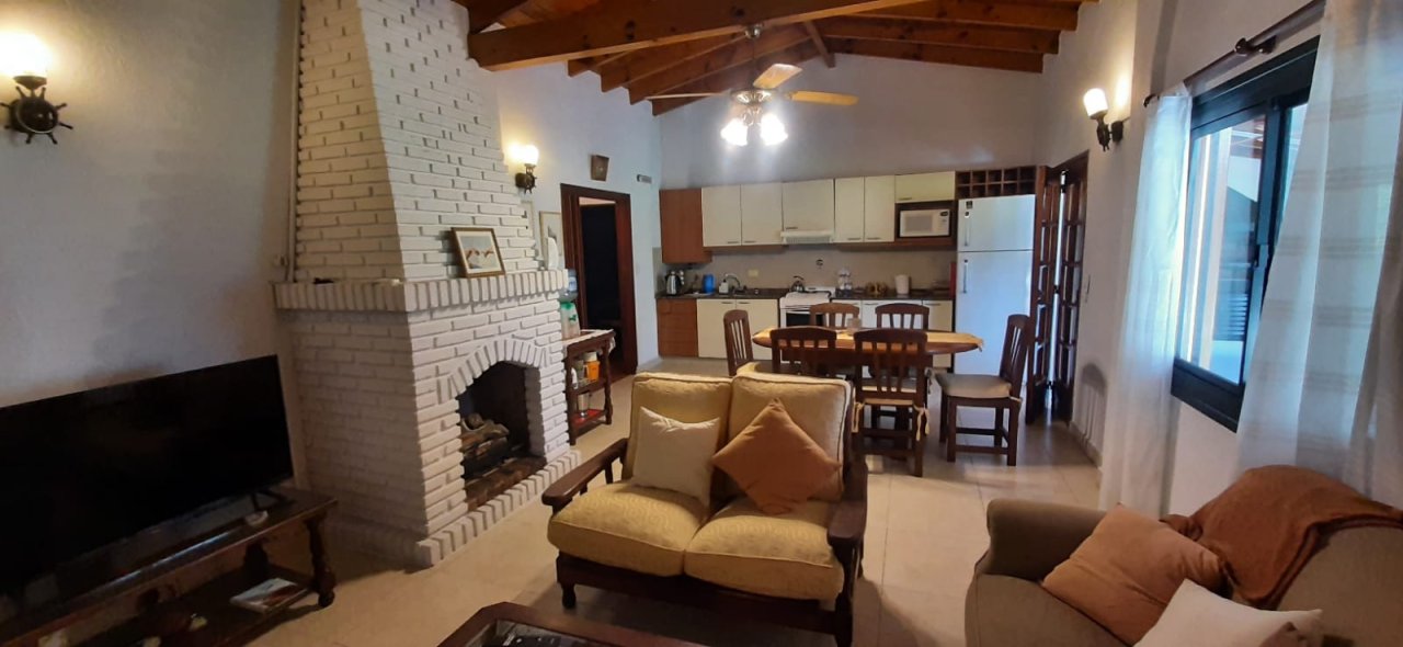 3 dormitorios ( 1 con cama matrimonial - otro con 3 camas individuales y otro con cama cucheta, 2 baños completos, pileta de natacion, gran parque, quincho con lavadero, amplia parrilla en el quincho, mas parrilla exterior y horno de barro. Grupo electrogeno.