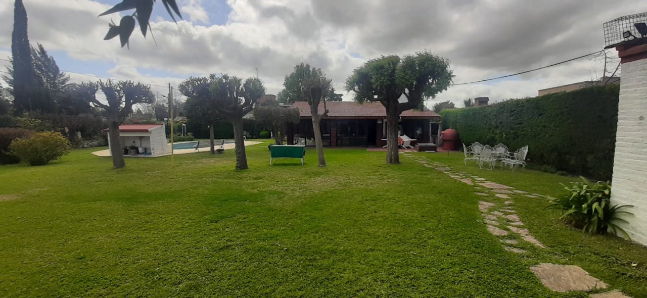 Barrio Los Rosales, hermosa casa desarrollada en una planta sobre lote de 1.200 m2 parquizado, el barrio cuenta con seguridad 24 hs, areas verdes y hermosa arboleda, 2 canchas de paddle, 1 de tenis, cancha de futbol y plaza para niños, sum, seguridad, bajas expensas.