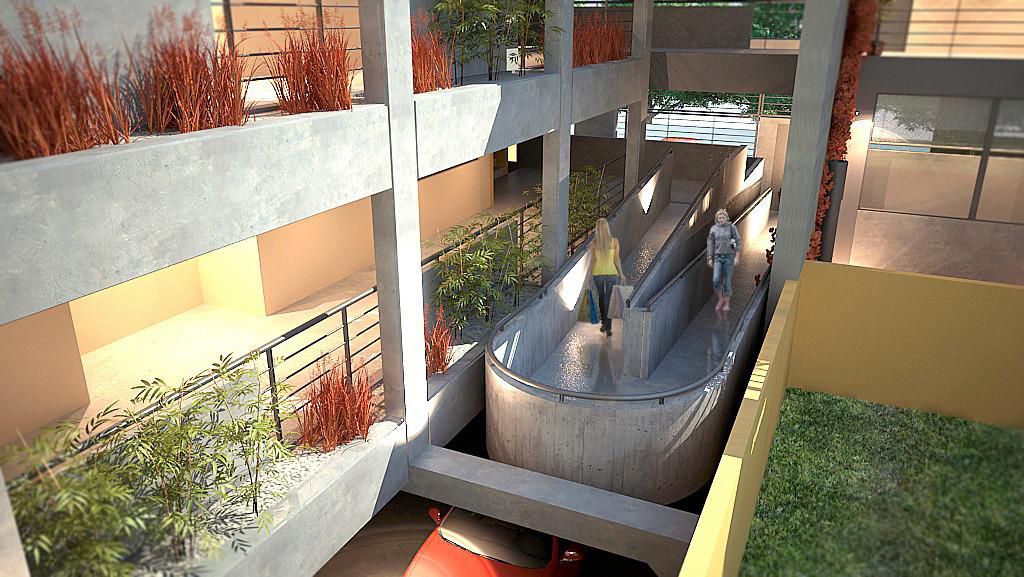 Portero con visor y cocheras con acceso automatizado. Diseño moderno y funcional.