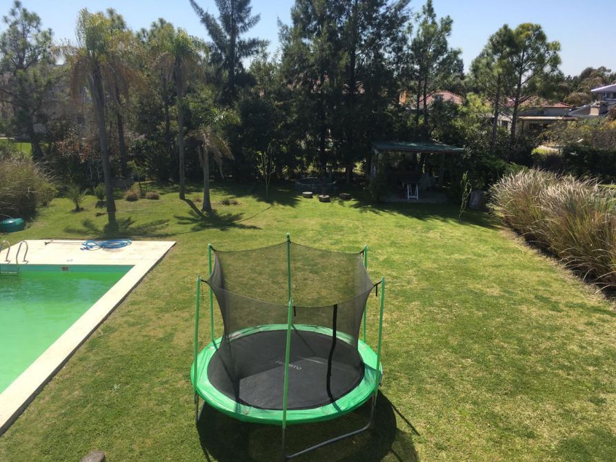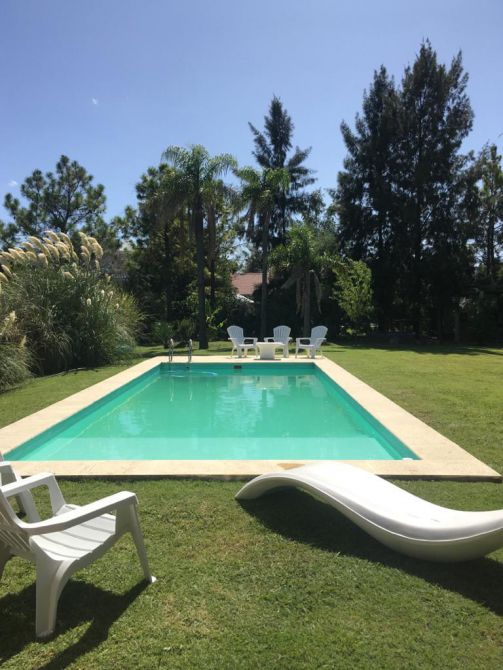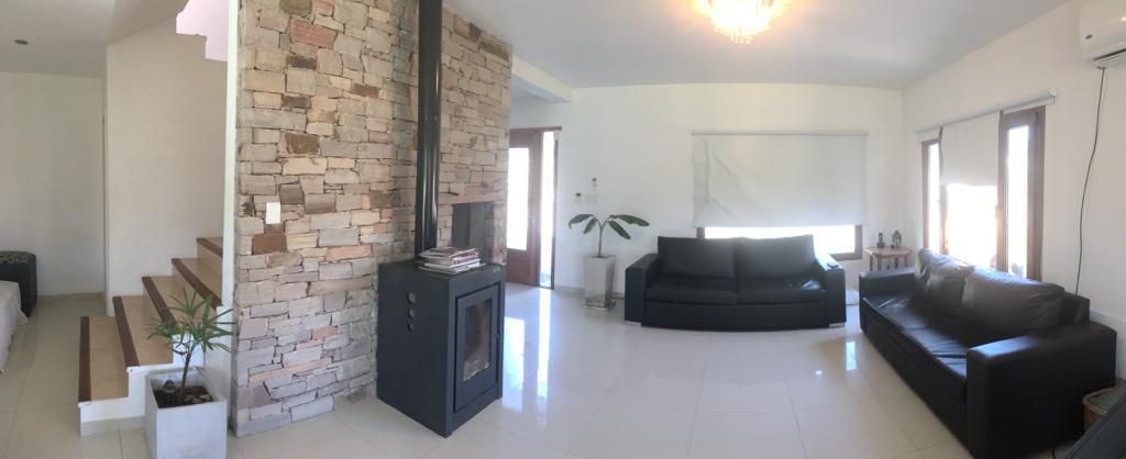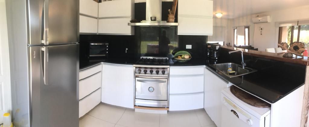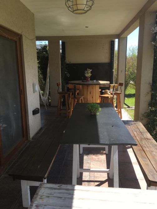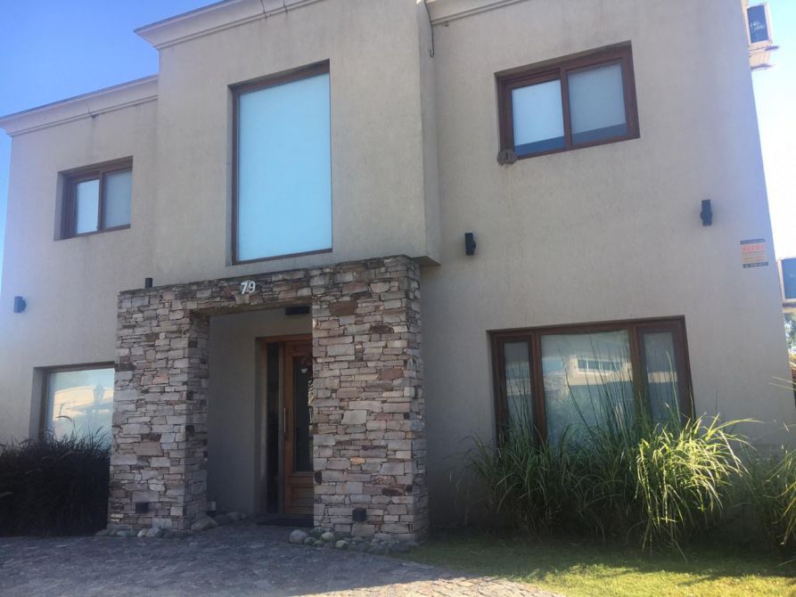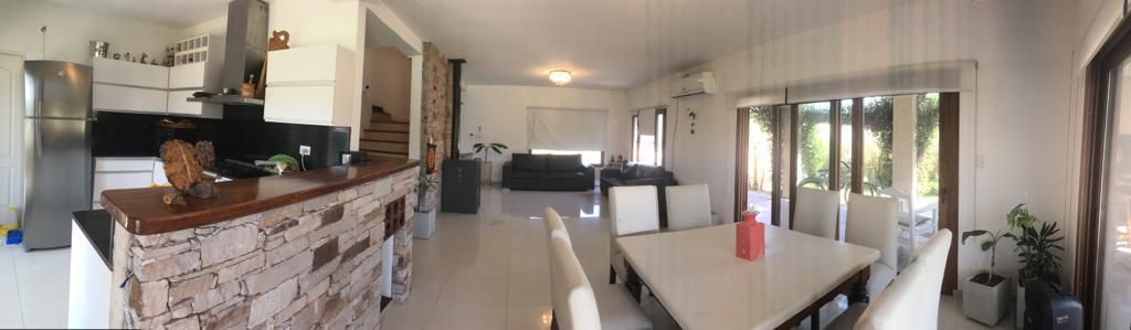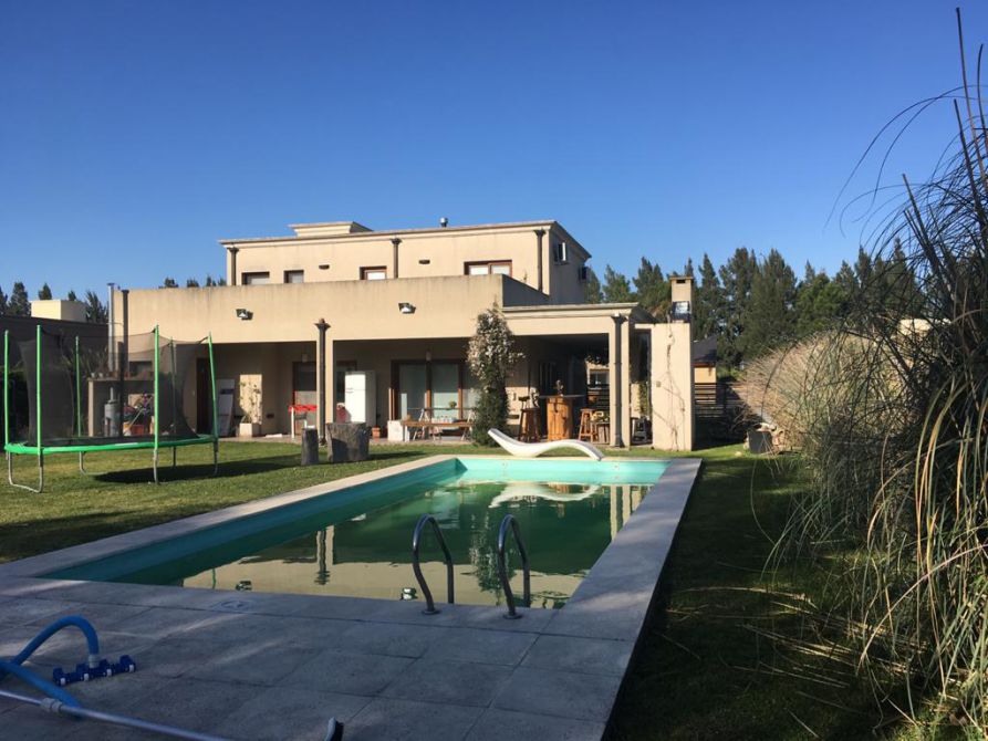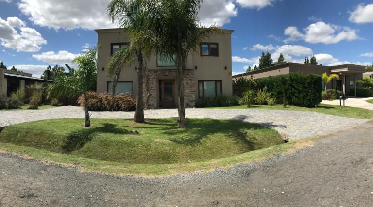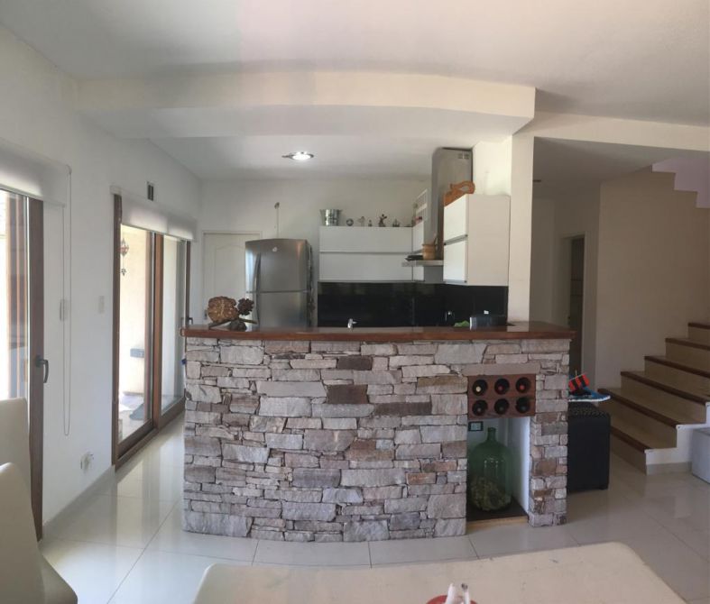 Importante propiedad en barrio cerrado Malibu. Hermosa casa dispuesta en dos plantas. PB: Habitacion en suite y vestidor. Recibidor, amplio living y comedor integrados a cocina. Baño de visitas. Lavadero. Escritorio. Garage cubierto con capacidad para auto y camioneta. Galeria con parrilla, baño completo. PA: Tres habitaciones todas con v aberturas en PVC , con doble vidrio y mosquitero , calefacción y refrigeración por a.c y Ecosol. Living con calefaccion central Tromen. Baño completo con antebaño con mesada extensa en mármol de Carrara. Amplia terraza de 9 x 6. Cuenta con Sepelin Extragas. Instalación aprobada para Gas Natural. . Pérgola con horno de barro leña y gas envasado y mesada. Asador en adoquines. Importante arboleda de palmeras. piscina de 10 x 4 con solárium ,, emplazada sobre lote de 1080 metros ,el barrio cuenta con escritura publica