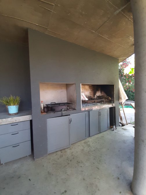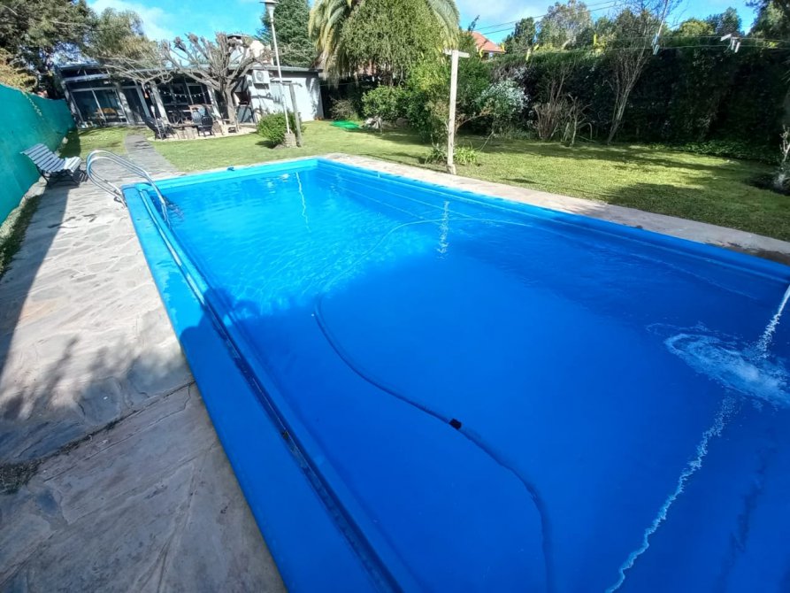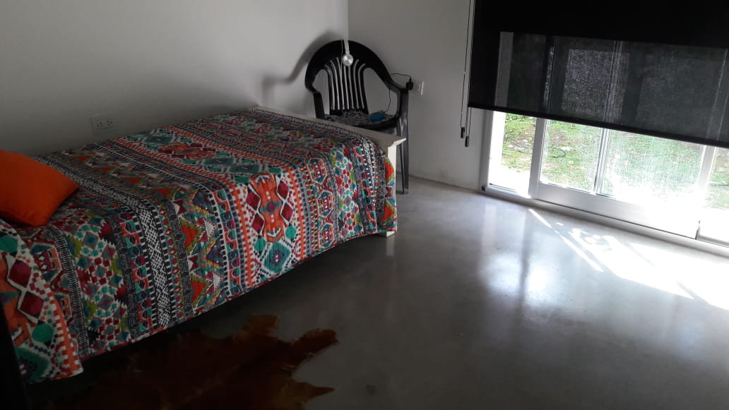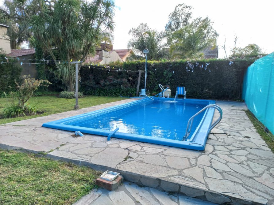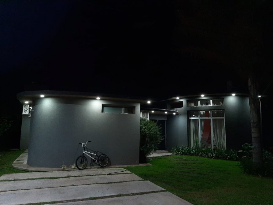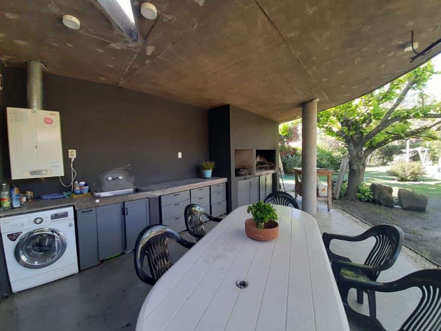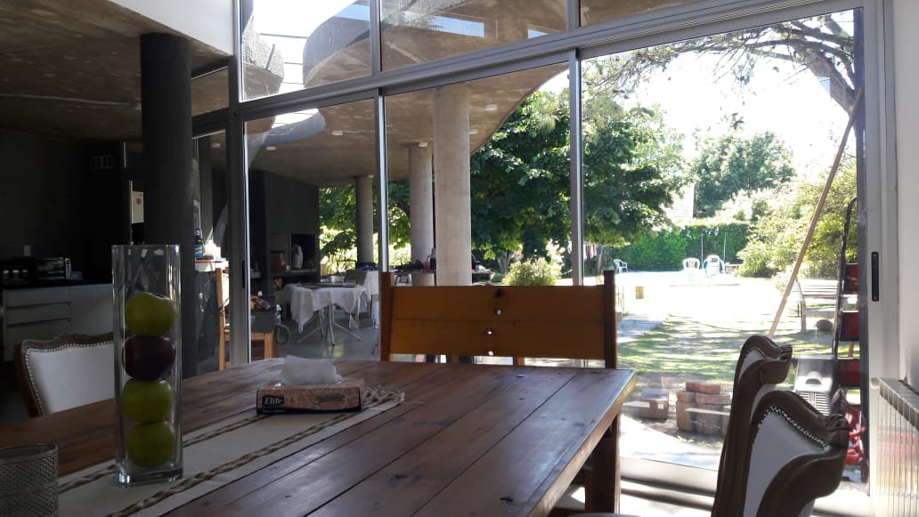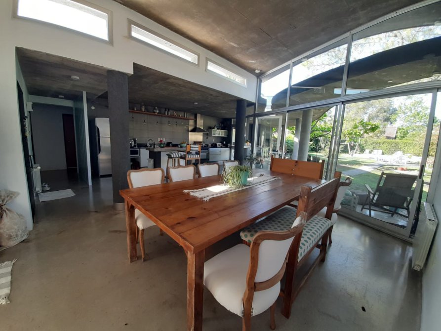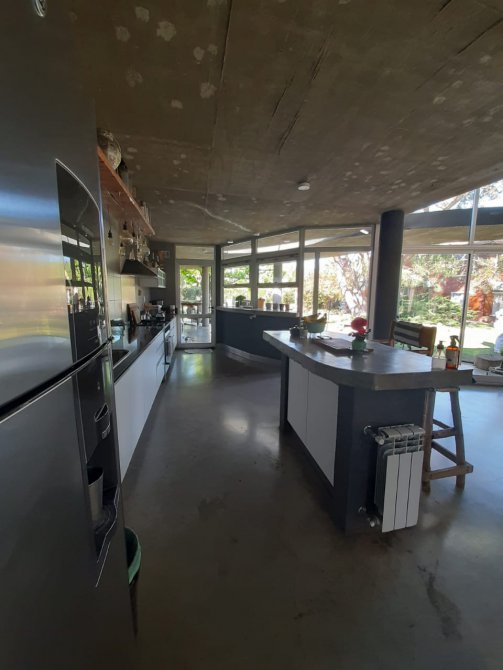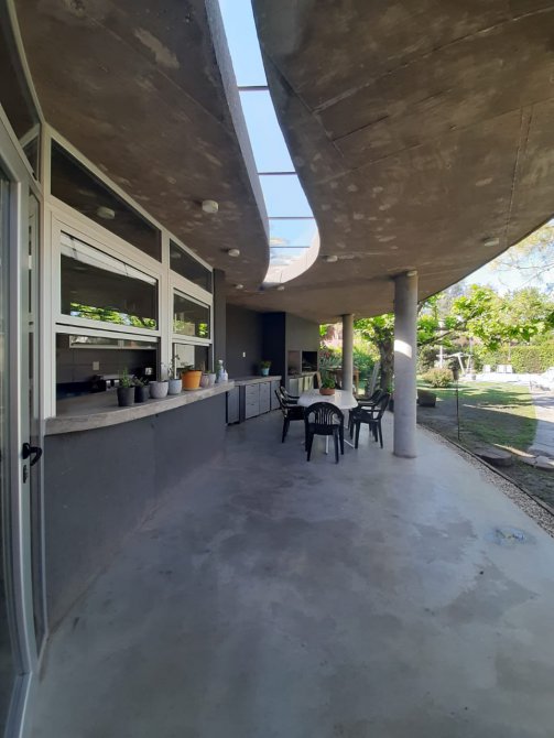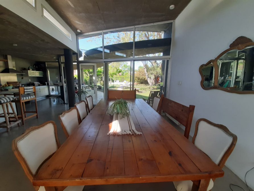 Hermosa y moderna casa realizada en hormigon, desarrollada en una planta sobre lote propio, con amplio jardin parquizado, con piscina de 8 x 4.