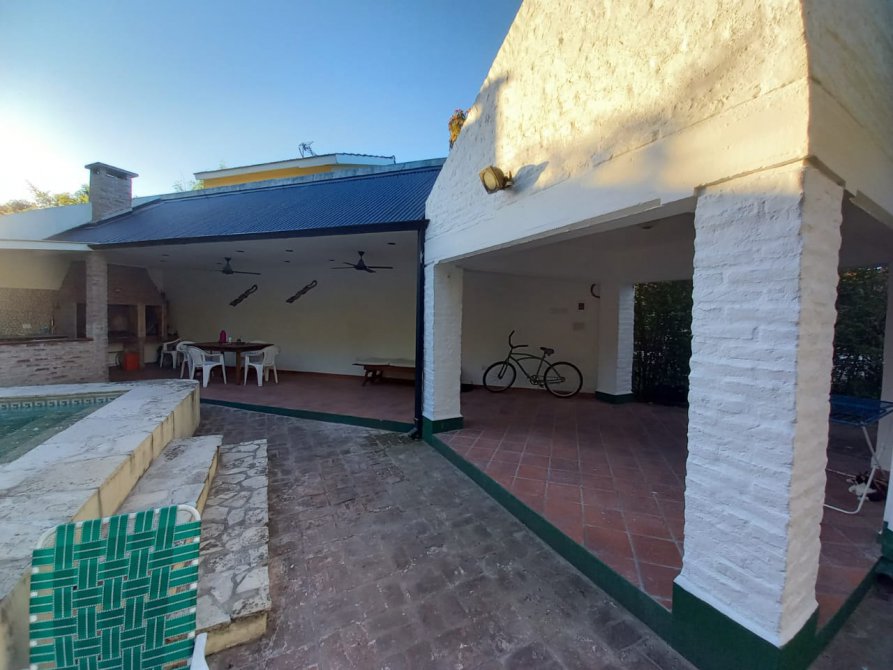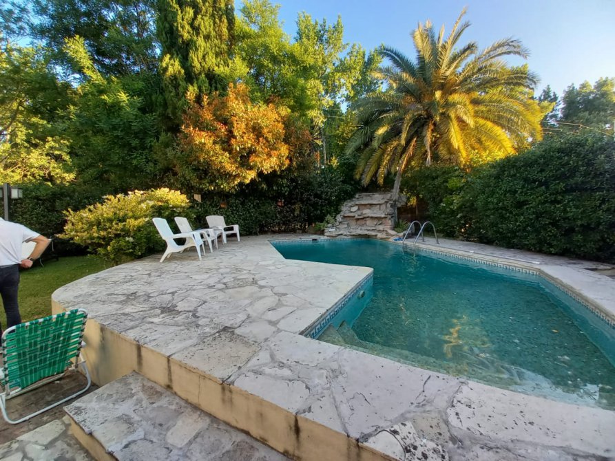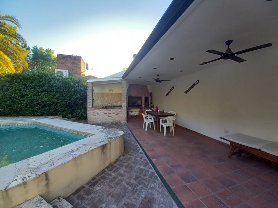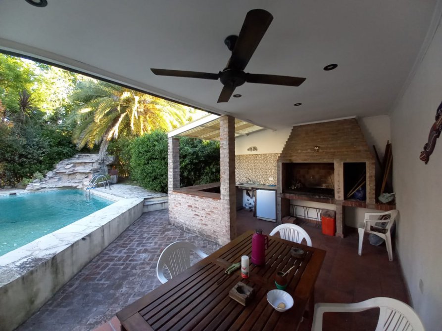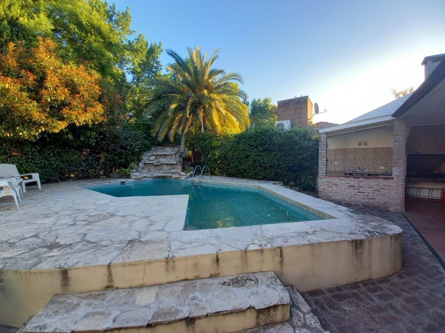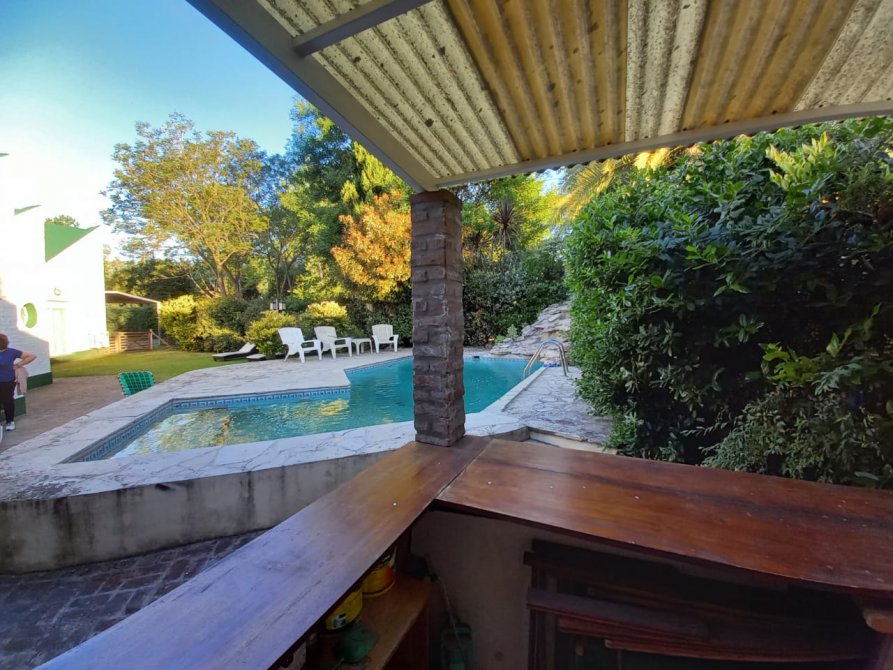Propiedad desarrollada en una planta, que consta de living-comedor en desnivel, cocina, 3 dormitorios, 1 baño; quincho con baño, cuarto de servicio, y piscina; emplazada sobre lote de 600m2.