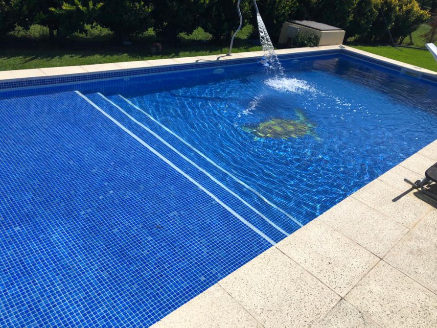 Piscina 10 x 3,50 revestida venecitas con pico cisne y luces rgb