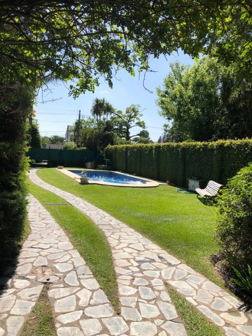 Excelente propiedad en zona residencial de Monte Grande. Lote de 10x80. Tres dormitorios, uno en suite. Pisos tarugados. Gran parque con piscina revestida en venecitas. Patio, lavadero. Quincho. Riego por aspersión. Escritorio. Todos los servicios.