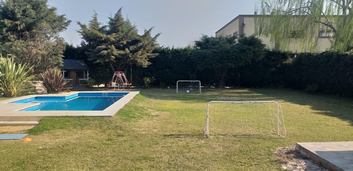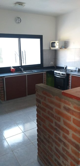 Casa desarrollada en una planta, que cuenta con living comer, cocina, dos dormitorios, dos baños uno de ellos en el exterior, sobre lote de 800con pileta, Brickland esta situado cerca de todo, colegios, shoppings, supermercados, cuenta con escritura.