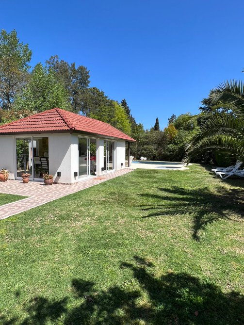 Quincho independiente con cocina y toillette, saloida a deck con juego de sillnes, Pileta y jacuzzi.