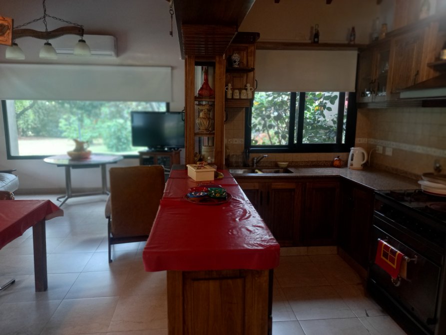 Amplia Galeria techada, Quincho con parrilla incorporado a la casa de 9 x 4, cocina con barra desayunadora.