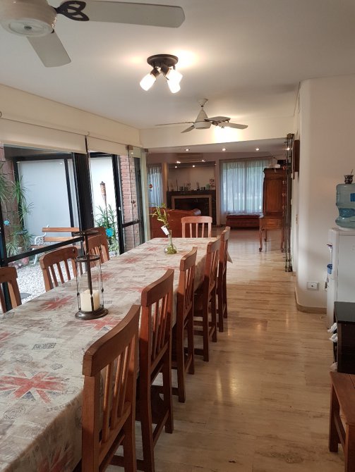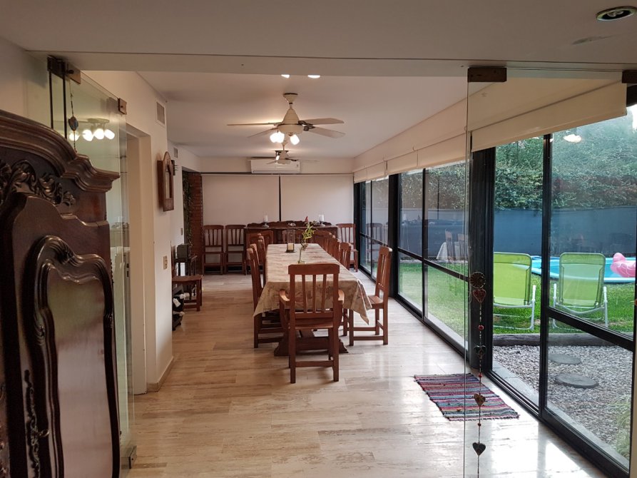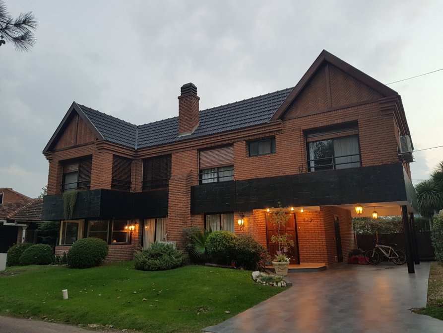 PB: Living con amplio hogar a leña en forma de L. Comedor integrado a la cocina, separado por barra desayunadora y gran quincho vidriado con salida al parque. Dormitorio de servicio en suite. Toilette de recepción. Baulera. Parrilla a gas.