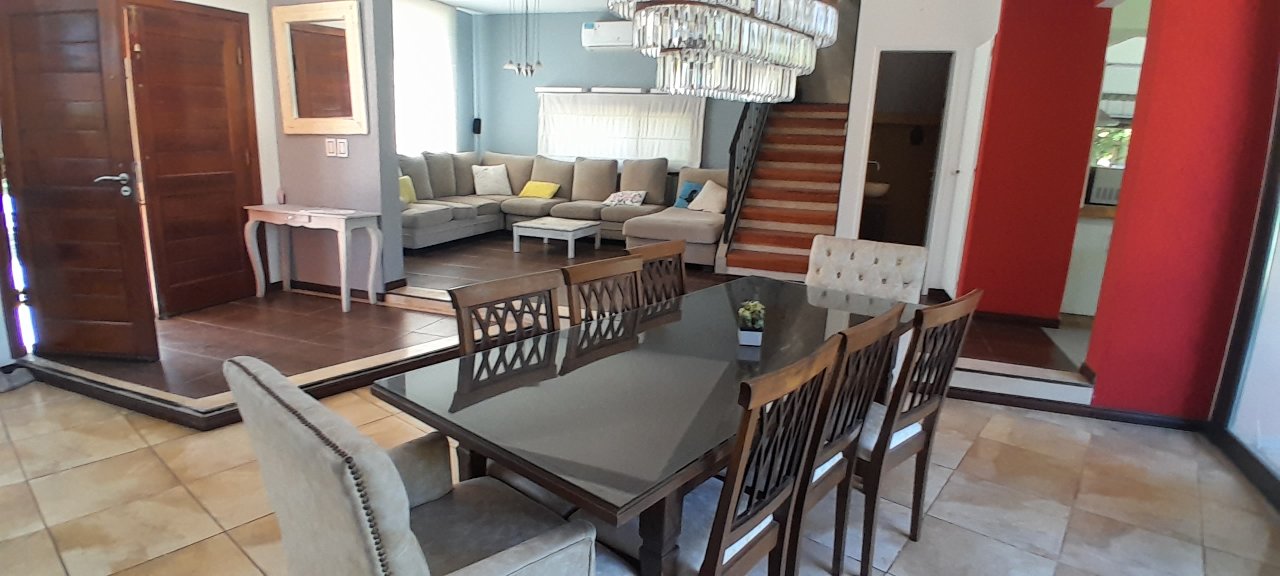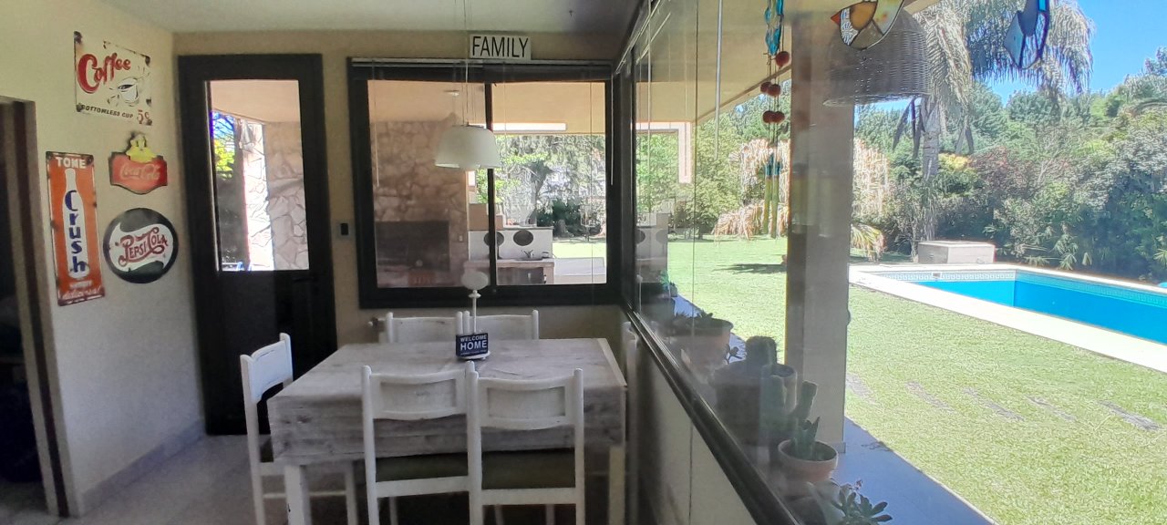 HERMOSA CASA, EN CLUB DE CAMPO EL LAUQUEN, NOS OFRECE EN PLANTA BAJA DOBLE LIVING CON COMEDOR Y TOILETTE, COCINA COMEDOR LAVADERO, QUINCHO, GALERIA , PILETA DE NATACION, PERGOLA.