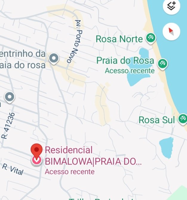 Estamos localizados a 600mts del centrinho, cerca de bares, restaurantes, pizzerias. A 700 mts de la balada Pico da Tribo. El Residencial esta cerquita de las 5 playas que tenemos en la región, de 10 a 15 minutos en auto. Praia do Rosa norte e sur, Praia do Ouvidor, Praia Barra da Ibiraquera, Praia do Luz. Estamos a 80km del Aeropuerto internacional Hercilio Luz de Florianópolis.