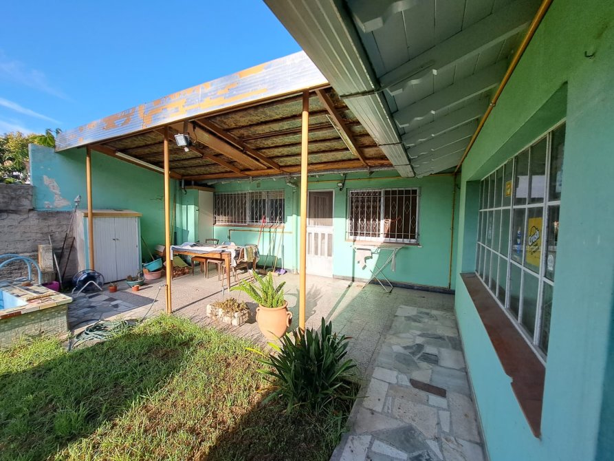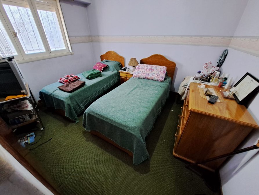 Consta de frente con rejas con entrada para auto, recibidor, dormitorio al frente con placard empotrado, baño completo, 2 dormitorios al lateral, amplio comedor diario que comunica a la cocina y a su vez al comedor principal.