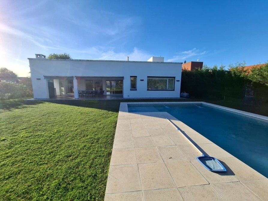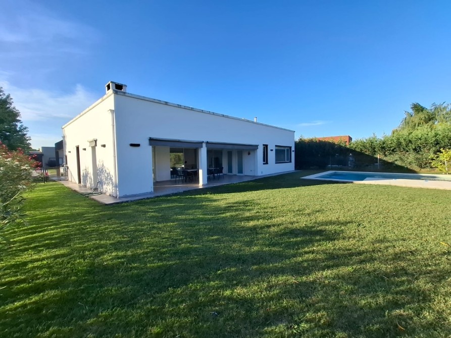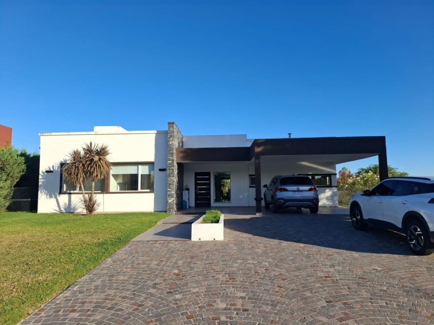 Ubicada en la primera etapa del Barrio Santa Juana, a escasas cuadras del acceso principal, esta propiedad combina un diseño funcional con terminaciones de alta gama. Desarrollada íntegramente en una planta en 230 m² cubiertos sobre un lote propio de 780 m², ofrece ambientes amplios, luminosos y una integración perfecta con el exterior.