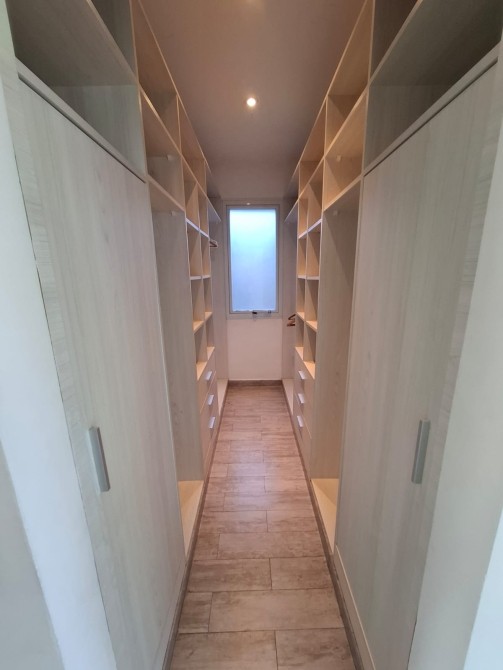 Suite principal con vestidor privado y baño exclusivo.Dos dormitorios secundarios equipados con placards.